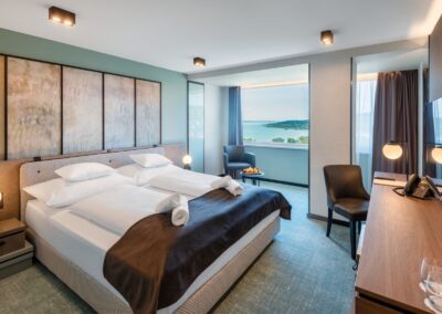 A Hunguest BÁL Resort**** szobái modern berendezésükkel és kényelmes kialakításukkal biztosítják a vendégek nyugodt pihenését. A szobák többsége lenyűgöző panorámát nyújt a Balatonra vagy a szálloda gondozott kertjére. Mindegyik szoba légkondicionált, ingyenes Wi-Fi-vel, minibárral és LCD TV-vel felszerelt, hogy az üzleti utazók és konferencia-résztvevők számára is maximális kényelmet nyújtson. A letisztult design és a tágas terek ideálisak mind a munkához, mind a kikapcsolódáshoz.