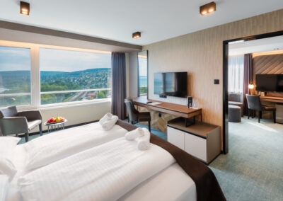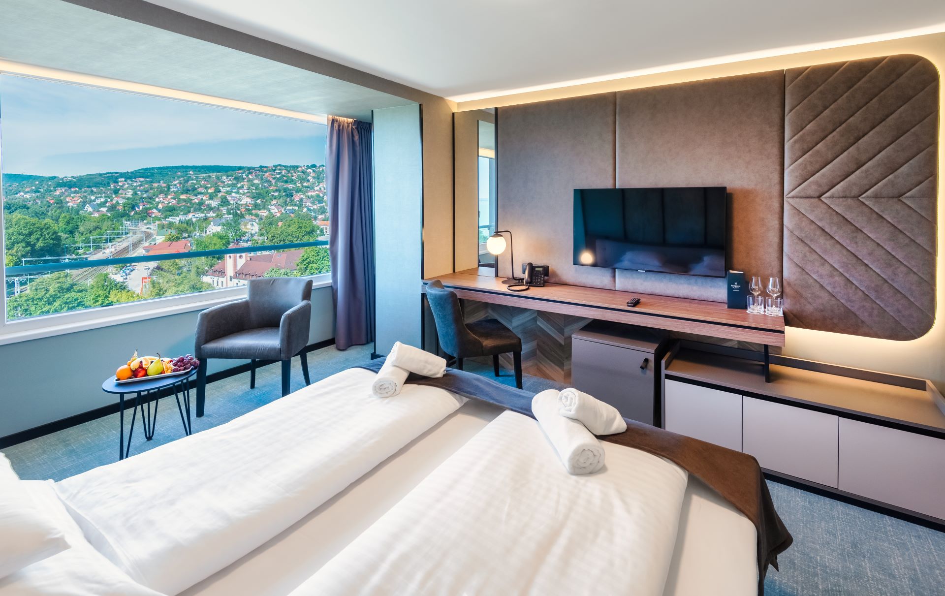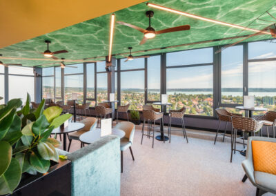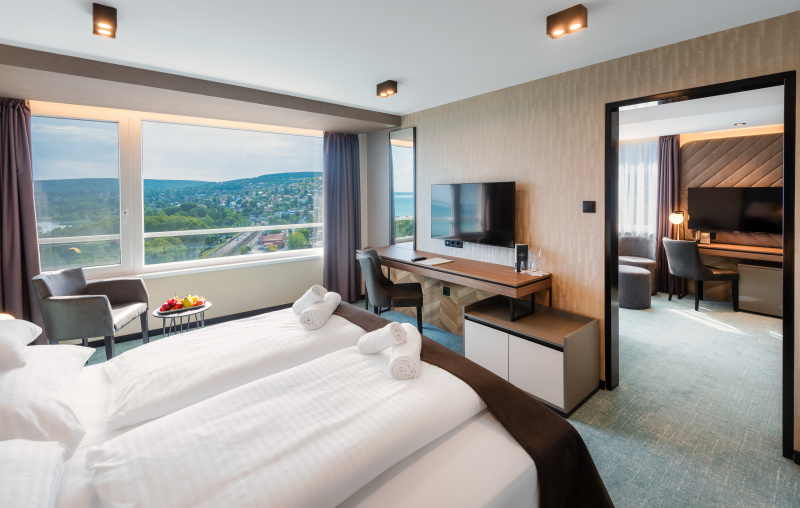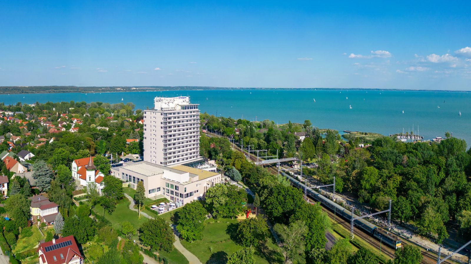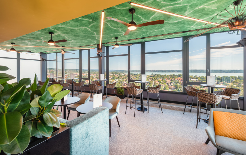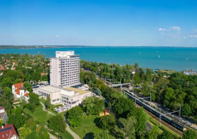 A 2022-ben teljeskörűen felújított szálloda belsőépítészetét a Balaton sokszínűsége inspirálta, így a vendégek minden percben közel érezhetik magukat a tó és a vízpart nyugalmat árasztó harmóniájához. A hotel szobáiból festői szépségű panoráma tárul elénk, így a kongresszus tudományos programjának szüneteiben könnyedén belemerülhetünk az ezerarcú Balaton pihentető látványába.